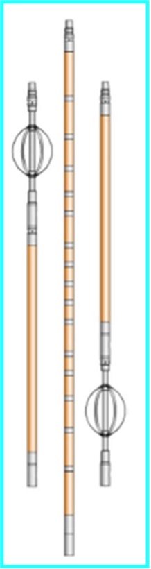 В типовой аппаратуре трехэлектродного бокового каротажа длина центрального (основного) электрода равна 0.15 м. Длины экранных электродов по 1.6 м. Экранные электроды отделены от центрального электрода кольцами из изоляционного материла высотой 0.01 – 0.03 м.