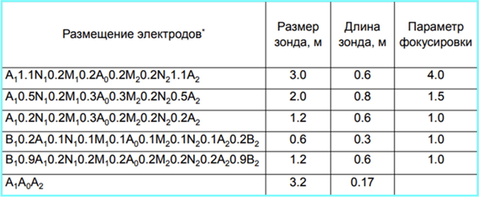 Наиболее распространённый радиус исследования – 1,5 м. Наименьшая толщина исследуемых пластов 1,0 м. и выделяемых пластов 0,4 м.