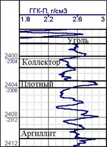 - Определение плотности горных пород — ГГК позволяет измерять объемную плотность пород, что важно для литостратиграфического расчленения разреза и оценки физических свойств пластов.