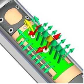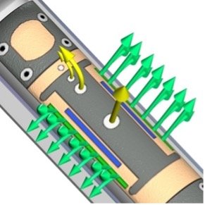 Для исключения влияния скважин на результаты измерений башмак внешней стороной прижимается к стенке скважины устройством, которое может быть либо рессорным, либо управляемым рычажным.