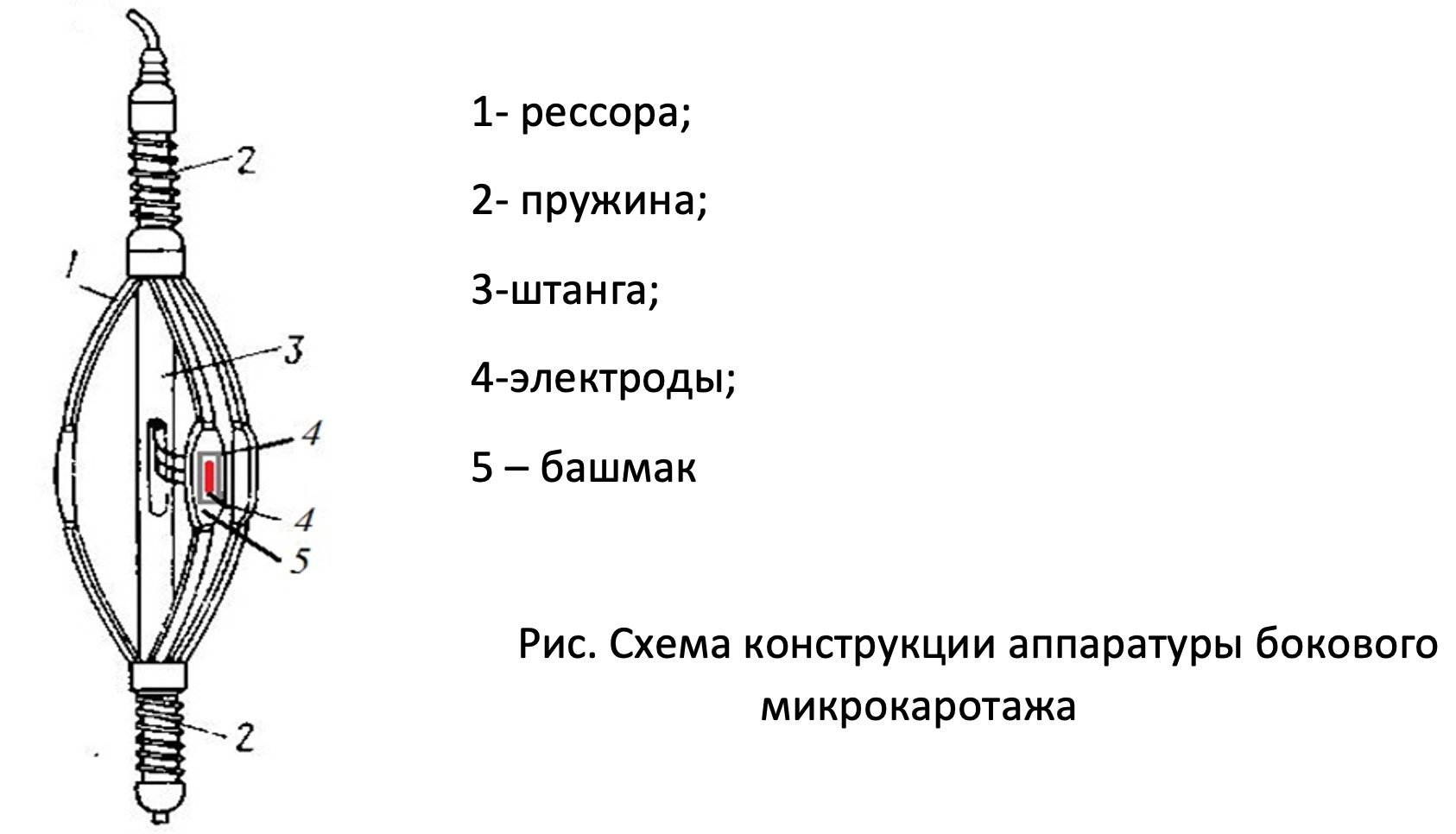 - невозможность получения надежных результатов при исследовании скважин, заполненных очень соленым буровым раствором (за исключением микрозондирования). (для уменьшения влияния бурового раствора на результаты измерения электроды зонда устанавливают на наружной стороне изолирующей пластины (башмака), которая специальной пружиной плотно прижимается к стенке скважины)