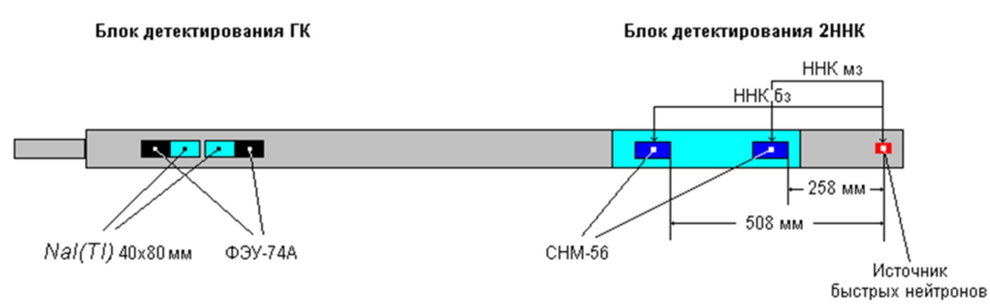 - Детектор: регистрирует нейтроны, замедленные до тепловой энергии или гамма-кванты, возникшие при взаимодействии нейтронов с породой.