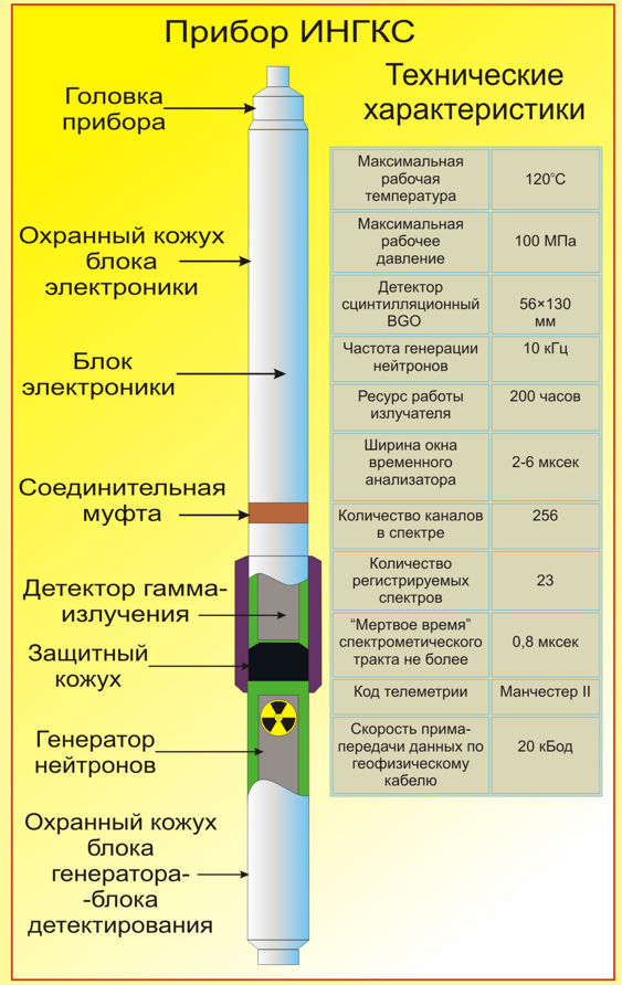 | Импульсный нейтрон-нейтронный каротаж (ИННК) | 60–80 см | Существенно больший радиус исследования за счет высокой энергии нейтронов (до 14 МэВ) и временной селекции; высокая разрешающая способность — возможность выделения маломощных пластов, точное определение средних параметров по времени жизни тепловых нейтронов. |