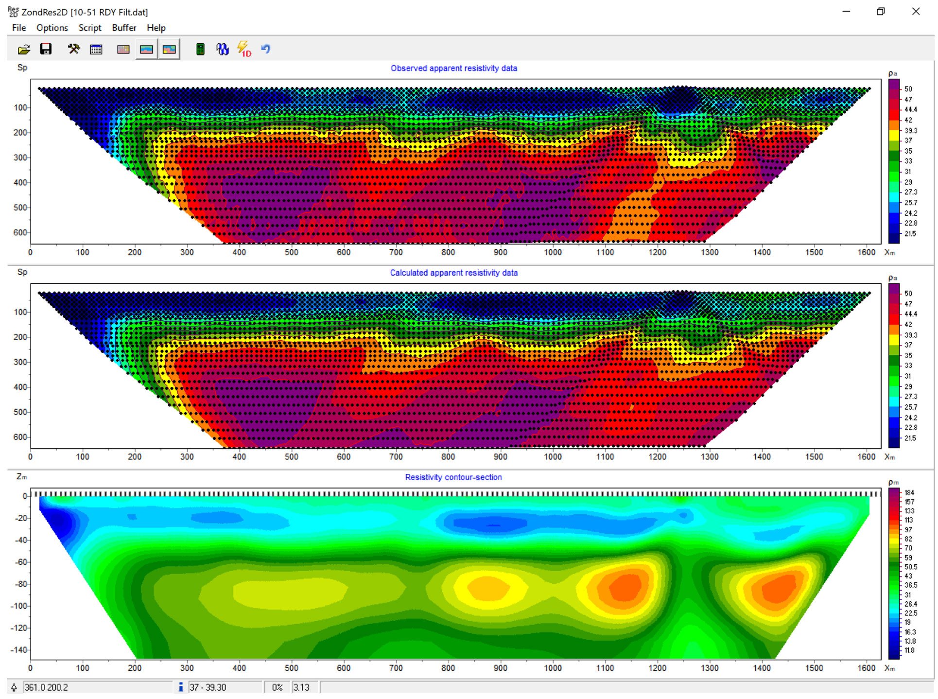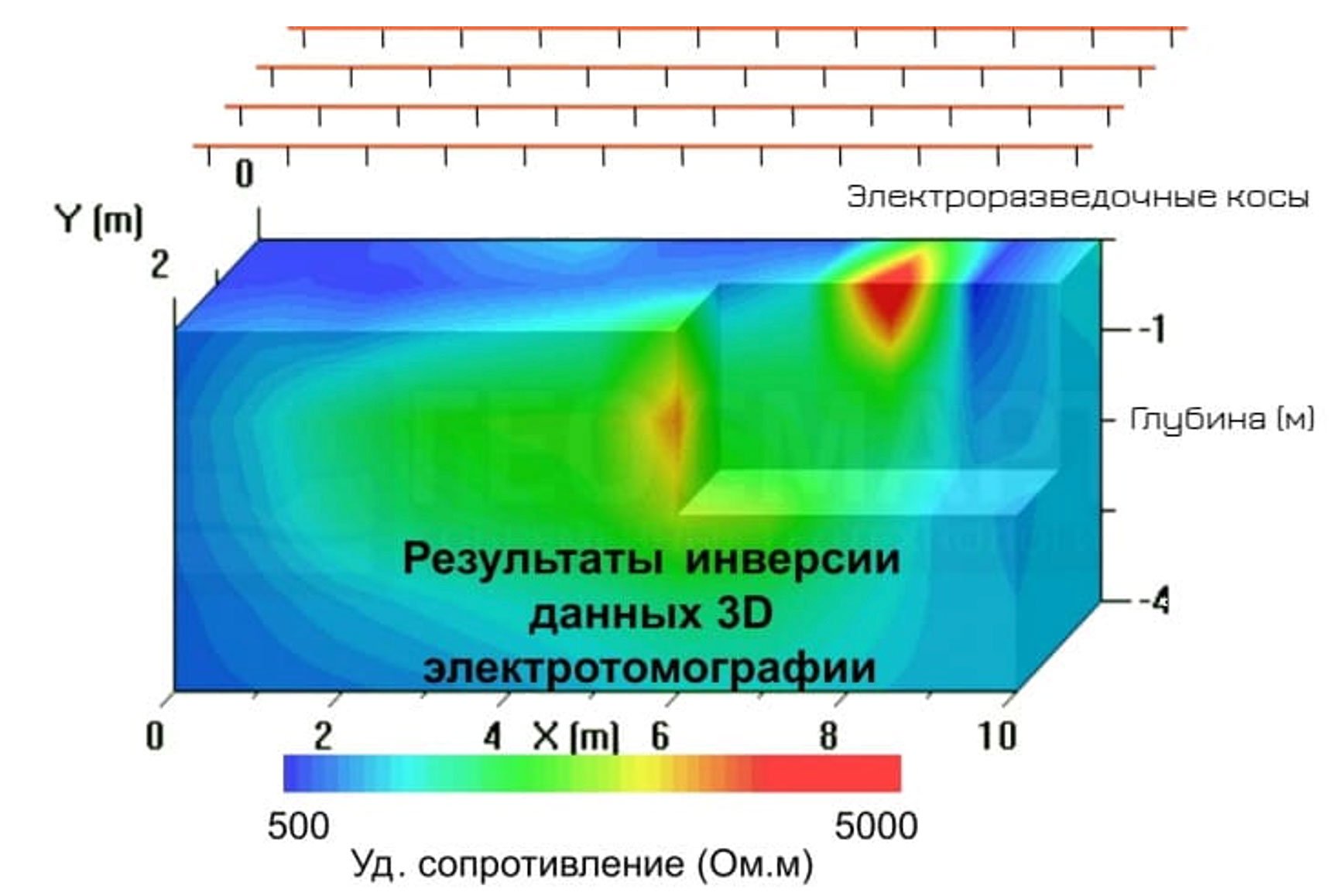 - Математическая инверсия полученных данных для построения геоэлектрической модели подповерхностных структур.