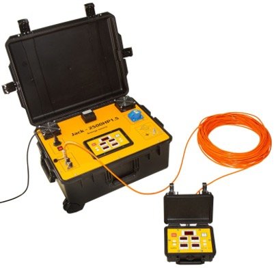 - Скважинные излучатели и накопители энергии: используются для возбуждения высокочастотного импульса при проведении сейсморазведочных работ на акватории или в скважинах. Накопитель генерирует короткий высоковольтный электрический импульс высокой энергии, который по специально разработанному высоковольтному кабелю подаётся на электродную группу спаркера и обеспечивает формирование ионизированных парогазовых полостей высокого давления.