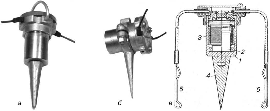 2. Датчики - служат для преобразования механических колебаний упругих волн в электрический ток переменного напряжения. При перемещении частиц горных пород вблизи корпуса в нём вырабатываются электрические импульсы, которые затем откладываются на оси времени:
