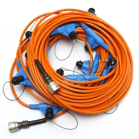 3) Шаг между отводами. Линейные сейсмические косы обеспечивают соединение установленных в сейсмической расстановке сейсмоприемников с сейсмостанцией. Телеметрическая коса обеспечивает связь последовательно соединенных 6-ти канальных телеметрических модулей в сейсмической расстановке с интерфейсным блоком сейсмостанции Лакколит-МТ, и также обеспечивает связь телеметрический модулей с "соседними" сейсмоприемниками. Есть также разновидность сейсмических кос для акваторий.