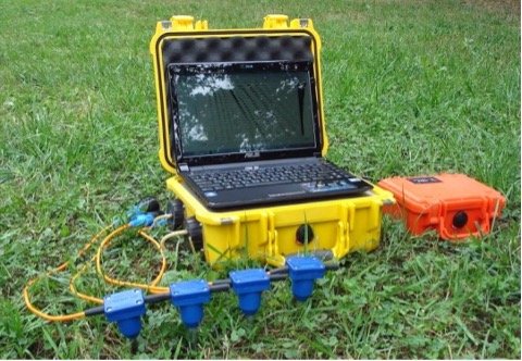 - Сейсмические косы: измеренный сейсмоприемником аналоговый сигнал через сейсмокосу транслируется до сейсмостанции, которая преобразует его в цифровую запись. Исключением являются косы для телеметрических сейсмостанций, которые используются для передачи цифрового сигнала от полевых модулей до интерфейсного блока и компьютера оператора. Телеметрические сейсмостанции Лакколит-МТ и ТЕЛСС-3 используют короткие секции кос, которые одновременно транслируют как аналоговый сигнал от сейсмоприемников до полевых модулей, так и цифровой сигнал от полевых модулей до интерфейсного блока, подключенного к компьютеру оператора. Основными параметрами кос являются: